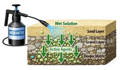 WSA14TSB wet component drives active agents deep into sand and gravel matrices.